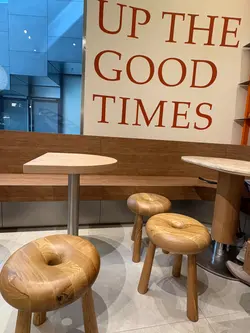 社交平台介紹呢一間麵包店原來荃灣一早已經有呢一間麵包店但因為呢度有座位同有咖啡關係專登走出來試一試整體環境舒服很喜歡這裏的木系裝修,尤其是半圓形枱的設計及bagels設計的圓凳好有特色多種類的蛋糕及包類很吸引!如要即刻試當場的麵包可以至少消費一杯咖啡便可以堂食享用😊…查看更多