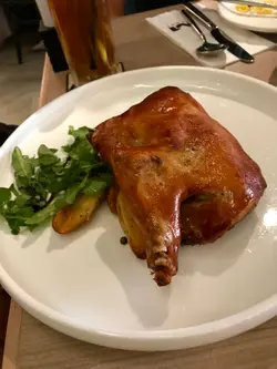 之後嚟到嘅係油封鴨髀配意色茄醬意大利飯。鴨髀有兩大隻,煮既火候啱啱好,唔會太熟或太生,肉質好嫩滑配上醋汁進食好味。意大利飯好煙韌同新鮮番茄醬好夾,分量夠晒大,好味。