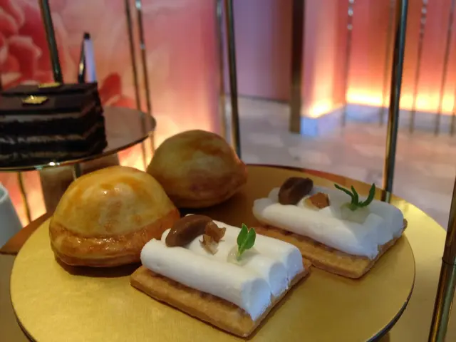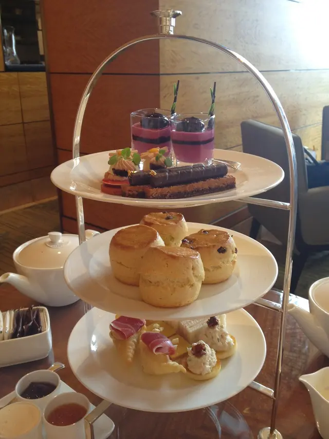 叫了一個二人份量三層架 ($470), 周圍環境雖然比較小, 但挺悠閒舒適的, 服務也不錯等了十多分鐘, 精緻的三層架已送到, 真有效率呢先來底層的咸點, 都很不錯哦, 尤其是我最愛的parma ham加上了牛角酥, 有驚喜中層的scone不錯, 有orange同strawberry兩種果醬, 配上 clotted cream, 鬆化可口, clotted cream略嫌奶味不夠濃, 整體算是很不錯!之後來到頂層的甜點, 有荔枝小點、紅莓小點、金箔朱古力蛋糕及雜莓mouse cup, 荔枝小點清新美味, 雜莓mouse cup則有點酸最後侍應哥哥拿了一座甜筒架出來, 雖然已經飽得肚子也有點脹了, 看見這麼可愛的迷你甜筒,還是忍不住要了一個, 結果原來是很甜的朱古力蛋糕, 不吃也罷呢...整體來說, 食物、環境及服務都不錯, 過了超滿足的下午 :) …查看更多