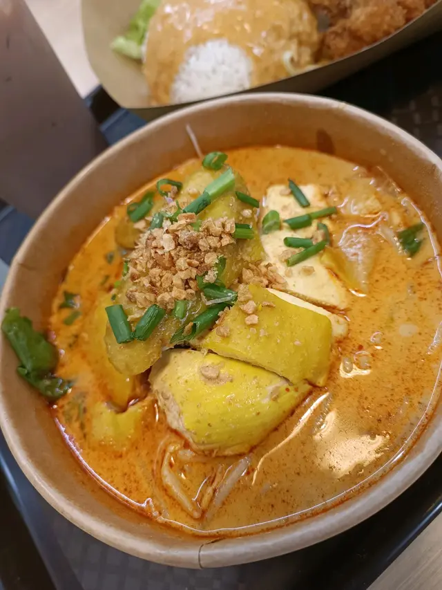 今次叫咗香茅豬扒煎蛋飯配椰香白咖哩汁$44,再加兩隻南乳雞翼$16,餐飲美祿$10。另外又叫咗個椰香白咖哩湯摻摻配豬頸肉$50,餐飲桔仔話梅冰$12。香茅豬扒煎蛋飯配椰香白咖哩汁份量都唔少,一如既往,個汁好惹味,豬扒又香又腍,一舊接一舊,好快ko 晒。南乳雞翼炸到好香脆,我囝連骨都lun 埋