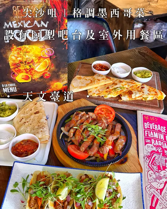 尖沙咀天文臺道 @8five2restobar 主打墨西哥菜裝潢有格調 設有吧台及室外用餐區 播住歌好chill配料來自墨西哥🇲🇽提供各式調酒 店員熱情有禮貌未到happy hours 都有不少外籍人士光顧 好熱鬧⋯⋯⋯⋯⋯⋯⋯⋯⋯⋯⋯⋯⋯⋯⋯⋯⋯⋯⋯⋯⋯⋯🐂墨西哥烤肉眼牛扒鐵板燒鐵板香氣四溢 肉眼牛扒外焦內嫩 肉質厚實且多汁配烤餅🫓蘸牛油果醬 莎莎醬與乳酪 口感層次鮮明墨西哥香料 沾醬與牛肉完美融合 濃郁與清爽交織·🐓辣蒜頭雞肉洋蔥墨西哥餡餅餡餅外皮香脆 雞肉鮮嫩帶蒜香 洋蔥甜味平衡辣勁芝士融化其中🧀拉絲濃郁 與牛油果醬 莎莎醬及乳酪交織 辛辣與香滑並存 墨西哥風味更添層次·🐑辣羊肉墨西哥玉米餅羊肉香氣濃郁 啖啖肉帶微辣刺激 玉米餅柔韌酥脆層次分明🌮辛香料恰到好處 突顯羊肉獨特風味唧點檸檬汁去羶味 口感豐富而帶勁 異國風情十足…查看更多