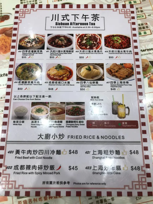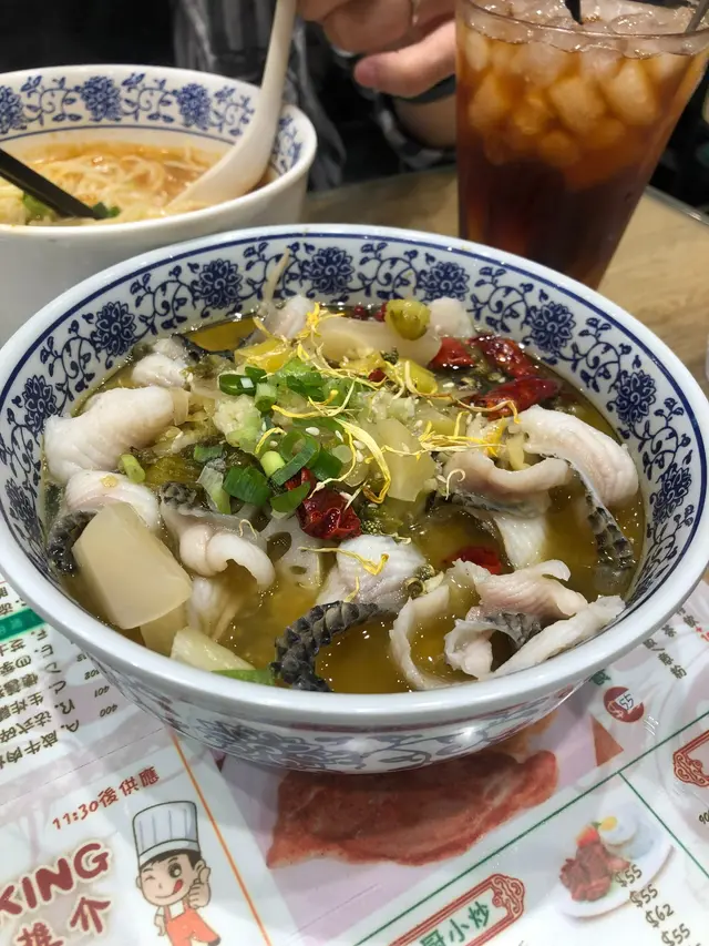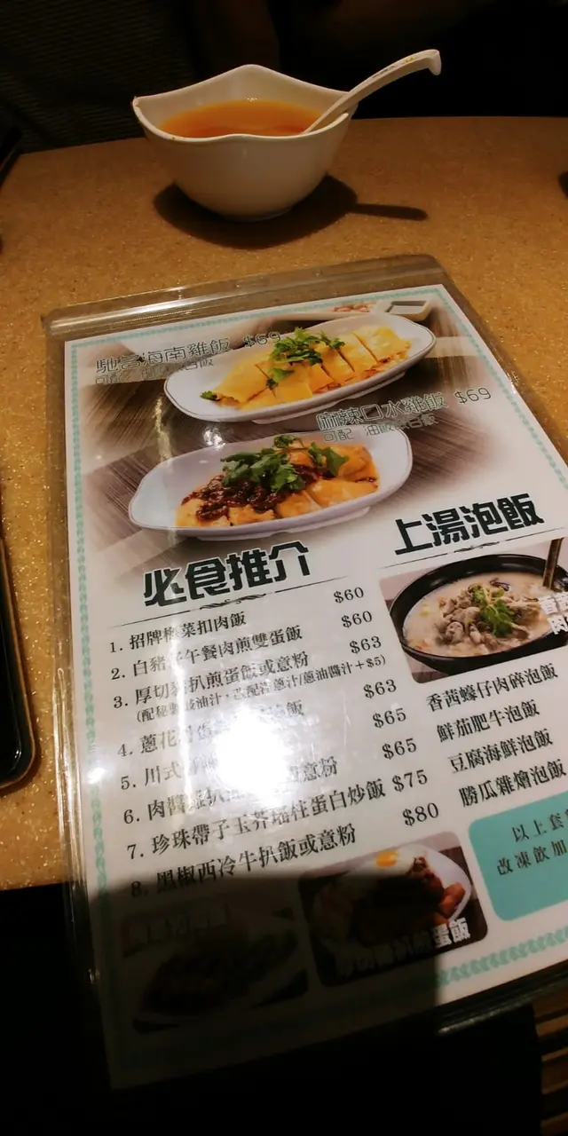 茶記,來來去去都沙嗲牛、叉燒意,有無諗過有得食酸菜魚、水煮魚?今次同朋友嚟到佐敦路過依間冰室,唔止有常見嘅茶記美食,仲有一系列川式下午茶。無論係水煮魚、水魚海蝦球、口水雞、醉雞定上海排骨都有得選擇。咪諗住依啲只係綽頭,味道一定欠奉。酸菜魚嘅魚片好滑,酸菜夠多,再加埋大豆芽,蓮藕片,旺菜,足料夠抵食。醉雞相反較為失色,雞肉唔夠滑,不過勝在酒香味突出但唔會過濃,恰到好處。跟餐可以揀粉、麵、飯,想當lunch或dinner都唔成問題。餐廳空間相當足夠,大家都唔會坐得太逼,坐落食飯都尚算舒適。各位係附近番工都可以一試。…查看更多