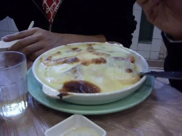 。是必勝客薄批的批底,不脆而軟的。蕃茄醬,甜蕃薯和煙肉為餡料,一吃,普通不過,而且蕃薯有點太硬了,煙肉亦不香沒甚味道,加了TOBASCO稍能提升食味,又是冬撰特選,但仍然失望不過。最後叫了兩個白飯撈鍋的湯底。這次西洋鍋就較好吃了,酸酸甜甜的十分不錯,但牛肉鍋拌飯就有點過甜了。哈哈,最後一顆米亦不剩了。。