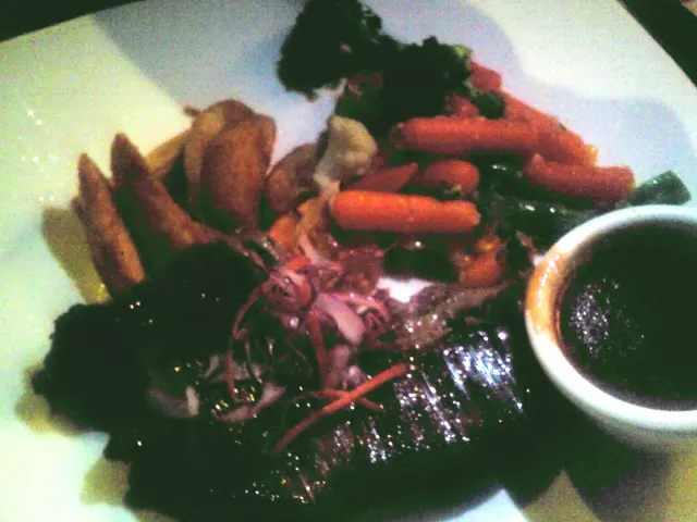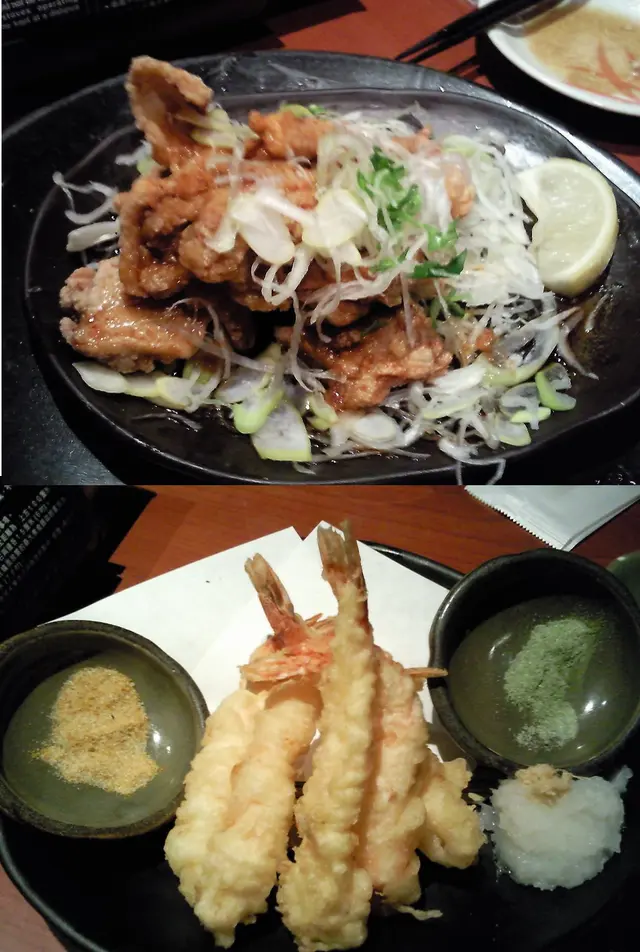 。准鹽雖是惹味,但好像有點格格不入似的,所以最後只選擇了天婦羅汁算了。見到餐牌上肉料理大大幅蔥油汁炸雞圖片,就一探虛實吧。把雞炸好後澆上蔥油。但我吃不到蔥味,而且好像不太夠熱,是放得太久的關係吧。雞件炸得有點過火了,有點乾和鞋,而且粉亦太厚,雖說小辛,但完全不辣的,是’小心’選擇的一道炸物,哈哈