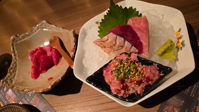 早排同朋友仔約食飯,本來唔知食咩好所以就行左陣,上到去咁啱撞正佢地話開魚喺門口就見到有條大大條嘅吞拿魚擺咗喺度開頭仲以為係模型我哋坐低佢哋就話如果有興趣可以出去同條吞拿魚影相,成件事都好特別之後7:30開始劏魚,啲Staff就行埋嚟話師傅會一路劏魚一路講解係咩部位,叫我哋有興趣可以出去睇,咁特別嘅體驗梗係唔好執輸啦之後我哋就嗌咗個四重奏同其他嘢試食條魚嘅唔同部位原來啲口感同油脂真係會有唔同嘅變化成餐飯嘅體驗都唔錯,值得一提嘅係我哋食飯期間佢哋不斷幫我哋換碟同埋加熱茶…查看更多