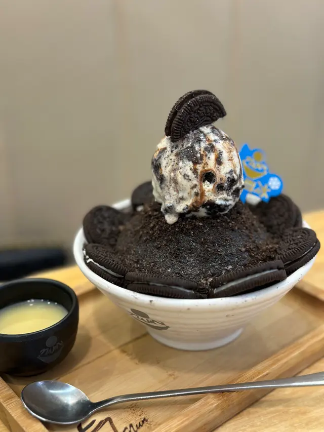 呢間開到好夜,之前同班朋友食飽飯,未夠喉就會過嚟呢邊食甜品。難得咁齊腳,可以一次過嗌多幾樣嘢食,咩都有得試吓呀嘛!~韓式魔鬼OREO碎碎雪奶 :好似食緊髒包咁,OREO碎碎覆蓋晒成個冰,食完成個咀都好髒,但真係好好味! 迷人草莓韓式牛奶軟雪糕:好似芭菲咁,士多啤梨味道,又酸又甜,加埋士多啤梨果肉同糖漿,簡直係迷人pink lady咁呀!韓式芒果芝士蛋糕雪糕窩夫:一塊大大、厚實嘅窩夫,上面有新鮮切粒芒果、忌廉、方形嘅芝士蛋糕同埋芒果雪糕,好豐富,好飽肚。海洋荒島(荔枝味):海洋嘅顏色,好夢幻,睇到都好消暑!上面仲有一球雲呢拿味嘅雪糕,仲有粒粒椰果,好有口感架。…查看更多