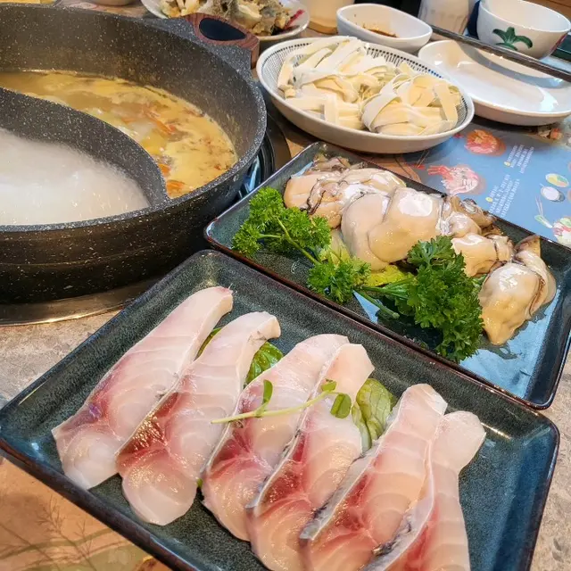 之前黎食飯見QRE Plaza 新開間新嘅餐廳呢度原來有粥底火鍋啊!揀咗雙拼 粥底火鍋 +金腿蟲草花花膠雞鍋!按人頭收費 人少少都幾好啊! 金腿蟲草花花膠雞鍋雞件嘅份量好足夠 肉嫩,花膠同埋蟲草花都好足料🏻 湯底好鮮甜另一邊係「滿粥鍋」先係粥水打邊爐 煮海鮮同肉之後再加入飯低配料煮粥,好鮮味好正啊好特別 仲會俾埋菜脯 粟米 南瓜粒 配料去煮粥 真係好豐富啊 頂級牛板腱牛肉嘅油花分佈均勻 牛味重 食落口感都好好手切嫩牛肉手切牛肉厚薄適中 粥底火鍋食 超岩食!肉質紅潤軟嫩而且細緻滑溜!留翻d最後整牛肉粥 好好味! 中山脆肉鯇厚切 爽脆!粥鍋推薦!! 美國桶蠔半份蠔味鮮美 肥美嫩滑 都幾多隻wor! 有著數 呢度 精選火鍋配料 泡白菜及蜂巢豆腐(免費無限量供應)