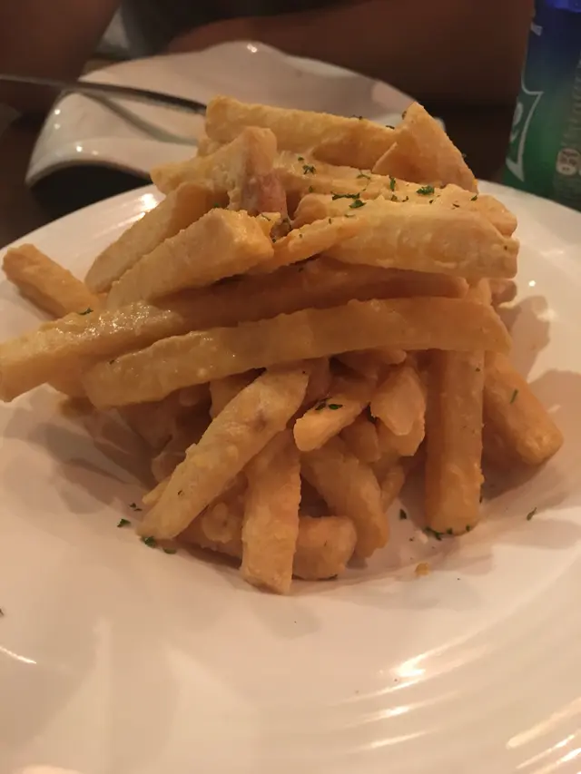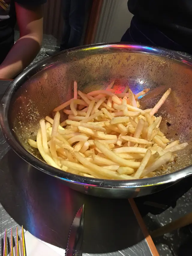加HK$38就有飲品同湯 (或沙律)。男朋友知我中意飲熱野,佢又中意飲凍野,所以揀左忌廉蘑菇湯同雪碧。 忌廉蘑菇湯 – 都幾好飲,但係絕對唔系呢間鋪頭的招牌菜。係好creamy但我有少少覺得同罐頭湯差唔多。同埋有少少嫌個湯匙太長,我成日飲飲下,好驚一放低個匙成個碗就會跌落黎。黑松露薯條本來以為是普通薯條(個樣重好似m記),所以無期待。點知一食落去就有黑松露味道。之後發覺薯條任食之後 對眼發光