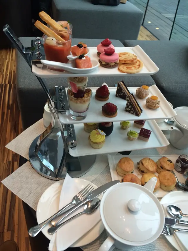 早左超過半個鐘去排隊 僅僅入到最後1張枱 有驚無險 由於未執好台所以waitress叫左我同兩個frd去側邊坐下先 執好先叫我地直接入座 幾細心 野食係等得比較耐 不過坐得舒服 又影下相 冇所謂啦 食物質素整體黎講幾好啦 呢個價錢high tea都唔算貴 on the side係scone配cream同jam 個人認為cream唔夠滑但個jam就幾好 偏淡最上層個bloody mary wif fresh shrimp最中意個汁 酸酸地一開始醒下個胃個macaroon配鵝肝醬 個人prefer甜少少 呢個偏淡但texture幾好個Cup Cake好好味最尾個lime tart我覺得有少少酸但朋友覺得ok …查看更多
