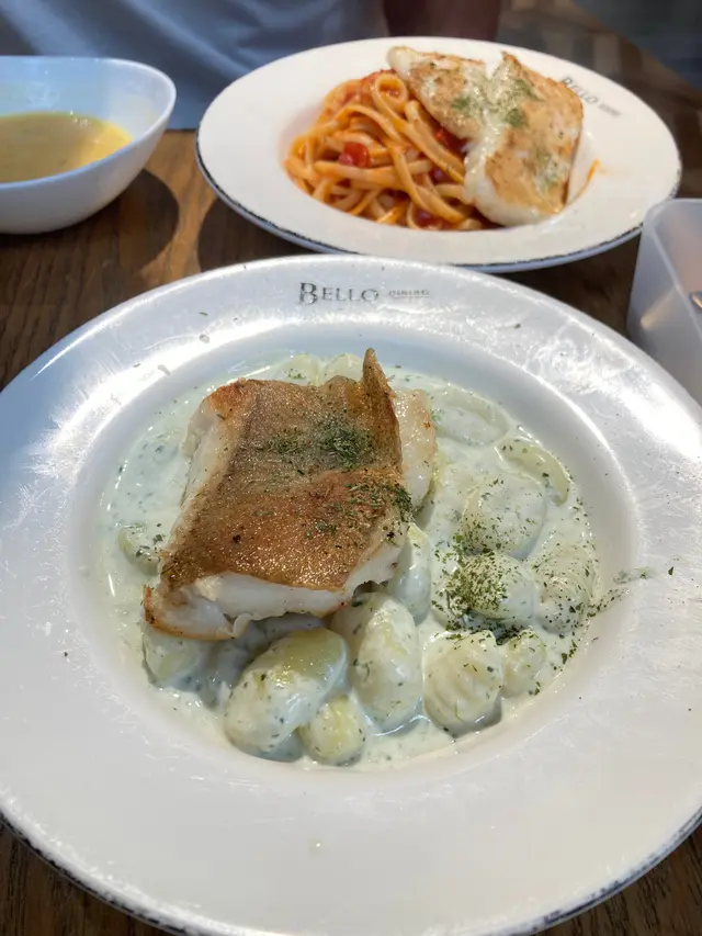 不過不失既西餐 Bello Dining 2023-08-12今日去左食bello 既lunch set 排左大概15分鐘左右就有得入去食🙂60-70幾既價錢有湯/沙律加個意粉同野飲🐻香煎比目魚波菜忌廉汁意式薯團 $78唔係咁多地方有薯團食所以叫左呢個試下個薯團無咩咬口,有少少好似食緊粉漿咁🥲忌廉汁太咸,不過條魚就煎得幾好食👏🏻78蚊既話我會揀食番個普通既意粉🐻鮮茄龍利柳扁意粉 $64蕃茄味不過不失,有茄蓉,扁意粉有咬口龍利柳就食到有少少雪藏味不過呢個價錢我會覺得算係咁啦🙈🙈🐻南瓜湯好淡,飲唔到南瓜味🤷🏻♀️總括而言,呢個價錢又唔洗加一我會話佢不過不失啦。比起以前係差左既。但係見有評論話服務唔好,我就唔係好覺啦🙈…查看更多以上食評乃用戶個人意見 , 並不代表OpenRice之觀點。讚好分享不過不失既西餐 Bello Dining https://s.openrice.com/QrbT0c3HB00檢舉 張貼 評分2味道4環境4服務4衛生4抵食用餐途徑堂食