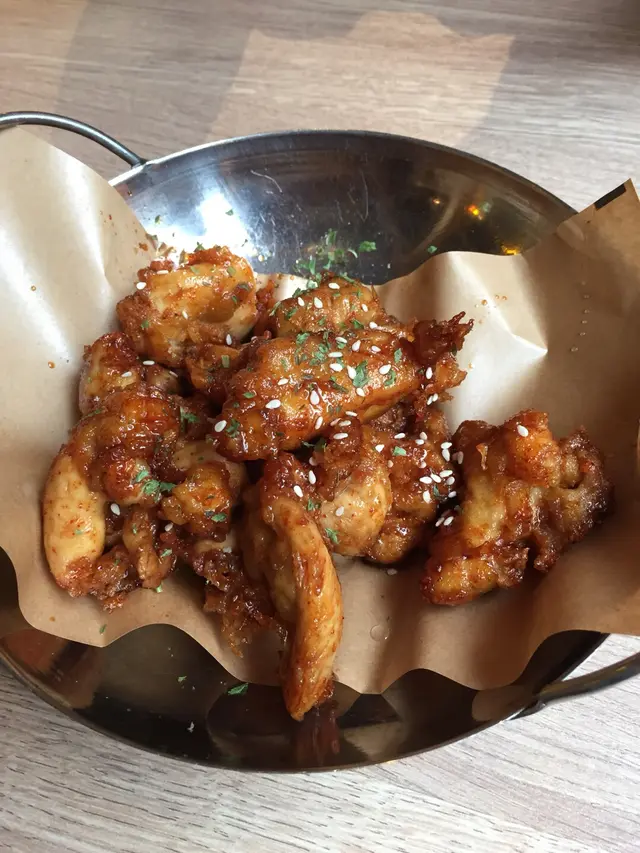 Came for early dinner today!Order a spicy fried chicken, carbonara toppoki and pale ale fried prawns. Also ordered a grapefruit mocktail.My favourite was the carbonara toppoki which was cheesy and has nice chewy toppoki. Fried chicken was also well marinated. However I would not recommend ordering the pale ale fried prawns because it was not as tasty compared to the other two items. Grapefruit mocktail was good for sharing and to balance the grease in the food