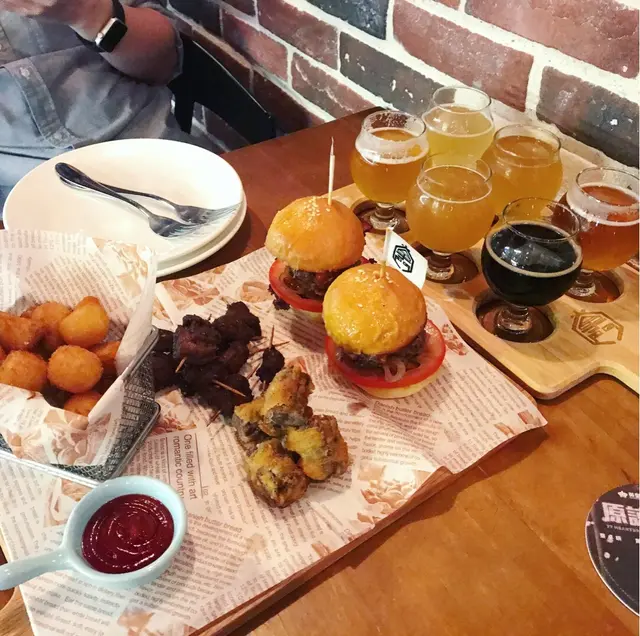 🍺台灣手造啤酒酒吧  掌門精釀啤酒香港店 過江龍係台灣有唔同分店仲分唔同派別香港人店酒吧裝修精緻帶少少貨廠FEEL 吧枱有十幾個掌門TAP頭 Happy friday當日人頭湧湧 星期五食飯book定枱是常識吧!指定動作叫了一set六款店內指定口味啤酒 指定唔洗揀就唔洗煩小杯裝 岩晒兩個人 可以試多口味佢地既手工啤上枱時係冰凍 啤酒飲落些微粗糙感不過有層次最深印象中有🍋檸檬味 🍼芒果酸奶味 味道獨特不過就感覺唔到台灣特色了一場黎到 試埋D野食 手工啤配台灣小食都幾唔錯餐牌上大部份係台式小食,亦都帶小部份港式魚蛋,串燒等等唔想煩叫了套餐 比較特別係:迷你漢堡-麵包好重牛油香,漢包唔乾,味道一般唔特別炸牛腩-好正,香脆好juicy,好軟熟另多都叫了鹽酥雞,份量唔少,又係好香口,台灣風味食唔停…查看更多