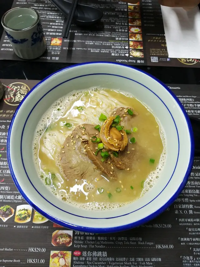 叉燒鮑湯麵上檯時,看到有一層浮在湯面的膠質。另有1顆入味鮑魚及3大塊叉燒,甚至比起外頭拉麵店弄的還要更好吃!先寫到這裏,期望把整個餐牌上的所有湯麵都試完~🤭…查看更多