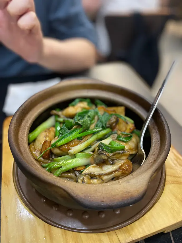 好難得星期五晚冇訂枱walk in都有位🥹好好彩地坐左最後一張二人枱幾個月冇黎食過,發現多左秋冬推介menu,廚師推介亦有新菜式,即刻試一試佢薑蔥爆汕尾生蠔煲 $238- 非常有驚喜!薑蔥好香,調味恰到好處,帶岀生蠔鮮味,咬落去好juicy好多汁!一煲仲要有6大隻生蠔,性價比極高