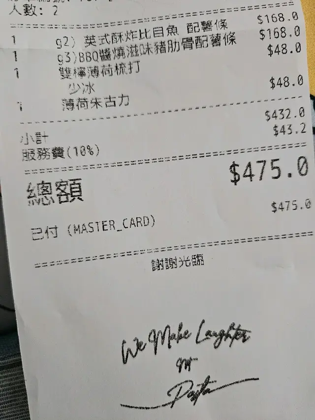 約左朋友嚟晚飯,主打seafood platter ,我地都唔太喜愛seafood 所以無叫。於是睇下佢二人餐,二人餐主菜係pizza, 兩個湯或salad, 小食兩款但一半以上要額外再加錢,價錢唔係咁化算,仲要無包飲品所以散叫左兩個餐同另外加飲品。個炸魚薯條普通過咩咁,啲炸粉厚到一個點。另外叫左個rib 係比較好食啲。…查看更多