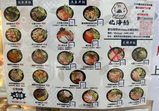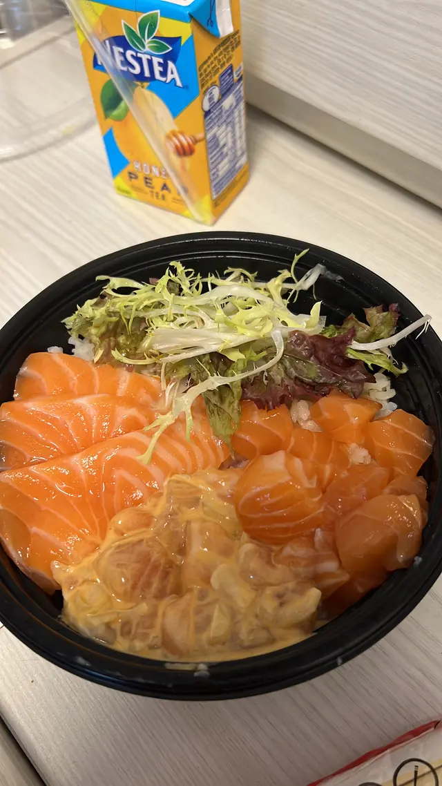 見個meun都有好多選擇,有熟食/炸物飯同好多款魚生飯/散叫壽司同埋手卷等等,見佢每個刺身飯都會清楚標明有幾多塊魚生最後買咗個三文魚三色刺身飯,$58包罐裝/紙包飲品,份量都算多,魚生新鮮,以女仔黎講絕對夠飽,而且要讚嘅係wasabi,豉油唔係吾係一包包,絕對唔係Hea 的,個人認為以呢個價錢嚟講性價比十分之高