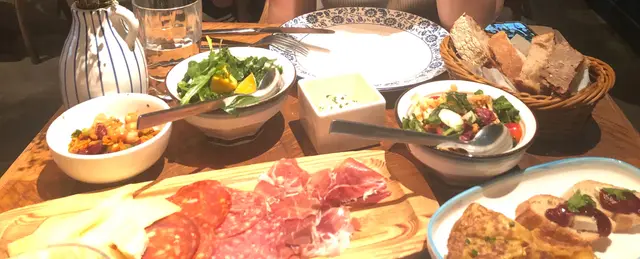 Met up with a dear friend for brunch. Went over the brunch menu and it’s a galore of food. Honestly it’s a LOT of food for 2 people. Service was good, staff members were attentive and friendly. Software was good with nothing to complain about.The appetizers arrived with more than met the eye. Cold cuts came first, then mushroom croquettes, then blue prawns with grilled on sea sat and kimchi sauce, pumpkin salads, spinach and rockets peas salad, and finally open egg on Iberian ham and potatoes. Then came our main. We were a bit full by then so we decided to wrap one of the mains (pork ribs) to go.We ate our charcoal roasted chicken with soft herbs. It was ok but not too exciting. Chicken could be more tender.Dessert was alright with a custard and a berry crumble. Berry a bit too sweet but not bad.Overall, a decent meal, a bit loud but a lovely place.$348 for one, with starters and appetizers for share.…查看更多