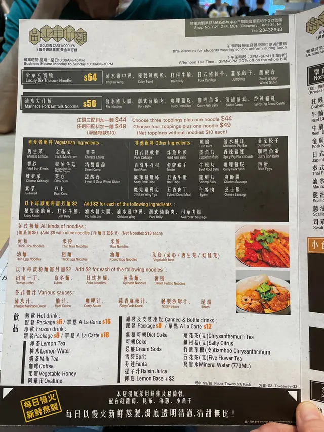 仍有進步空間 黃金車仔麵 2023-06-03天氣太熱去一間新開的車仔麵檔試吓 寶琳地鐵站出口向左邊行 過馬路沿着路邊行 不遠就到 地方空間大 冷氣夠 落單用QRCode 叫了兩碗三餸麵 有酸甜齋 響鈴 蠔油冬菇 清湯米線 魷魚 豬耳 豬皮咖喱汁湯底 樓面似乎不夠人手 忙過不停 食客都唔敢打擾他們 食物方面豬皮太淋甚至會爛 影響外觀口感 要注意下 響鈴剛炸起還有聲響好脆 但有點油膩 豬耳夠脆味道不錯 酸甜齋不夠酸甜 可以再加重酸甜味道 提高醒胃效果 星期一至五 下午2後埋單還有9折👍大致上仲有進步空間 加油 令街坊有口福.😁…查看更多+ 1以上食評乃用戶個人意見 , 並不代表OpenRice之觀點。讚好分享仍有進步空間 黃金車仔麵 https://s.openrice.com/QrbT0Hkv900檢舉 張貼 評分3味道4環境3服務4衛生3抵食推介美食響鈴豬耳用餐途徑堂食
