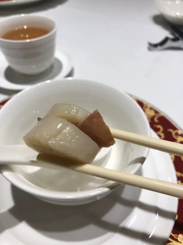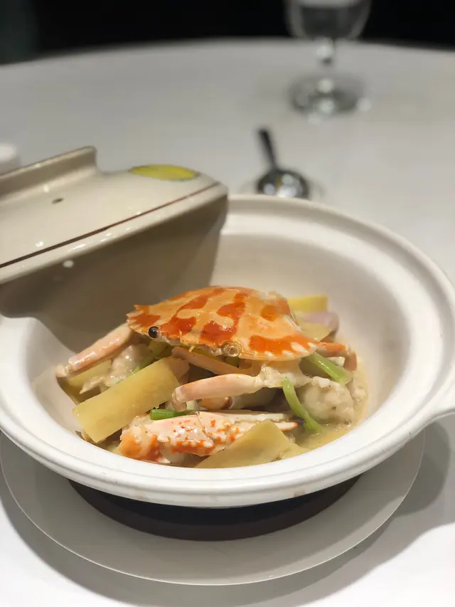錦繡海鮮盤🦐 $720這個海鮮盤絕對是一道令人驚艷的開胃菜。這盤菜色擺盤精美,融合了各種海鮮,威化海鮮卷有帶子粒、海班粒、蝦粒同芹菜粒,炸得好酥脆都保持到海鮮嘅鮮味。西檸琵琶蝦每一口都充滿鮮甜味道,原隻游水蝦釀上蝦膠,再以薄面包糠炸成金黃色,加上西檸汁的酸甜味,味道層次極為豐富!翡翠麒麟帶子嘅原粒帶子中間夾住金華火腿,其鹹香味讓人胃口大開😙仲有冬菇片同西蘭花相襯,一絕!活花蟹炆斑頭腩 🦀 $時價活蟹炆斑頭腩結合了花蟹肉的鮮嫩和斑頭腩的濃郁,搭配上豐富的醬汁,入口酥軟多汁,肉質彈牙,是配飯首選🤤原燉鮮蓮冬瓜盅🍲 $980他們的冬瓜盅也是一道精湛以及很有營養價值湯品。湯的口感清爽,湯底鮮甜,完全沒有味精。原來餐廳會生劏田雞取骨,再以老雞煲湯,配上燒鴨肉、蟹肉、瘦肉、田雞肉、鮮蓮子長時間燉成,每一口都有不同的材料味道,帶出蓮子的芳香和冬瓜的清甜🥺富豪正式古法鹽焗雞🍗 $660富豪酒家的招牌菜之一是它的古法鹽焗雞。這道菜以傳統的鹽焗方法烹調,雞肉長時間在多層沙紙埋係粗鹽入面,用適量溫度鹽焗,保持了雞肉的鮮嫩多汁,每一口都帶有淡淡的鹽香味,亦可以點蔥薑油加添對味蕾的刺激😋瑤柱水晶炒飯🍚 $320這個炒飯口感綿密,米粒粒粒分明,瑤柱的香味與蟹肉及蔥香完美融合,每一口都能感受到炒飯最重要的「鑊氣」😲加上靈魂材料瑤柱、蟹肉、蛋白,為這個炒飯更添風味甜品🍵🥮西檸蛋白花馬蹄露、阿翁溏心月餅甜品是一餐飯的句號,馬蹄露清涼甜美,加上西檸汁,酸酸甜甜十分解膩。而溏心月餅也不用多說,內餡十分香甜,加上奶黃流心,這兩道甜點為整餐劃下了美好的句號🥰🫡富豪酒家員工服務非常周到,也會慢慢介紹每道菜的材料、做法及特色,除了品嘗美食,更可以學習菜式…查看更多