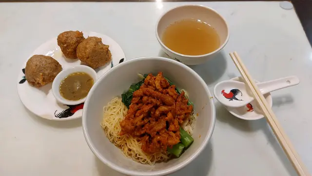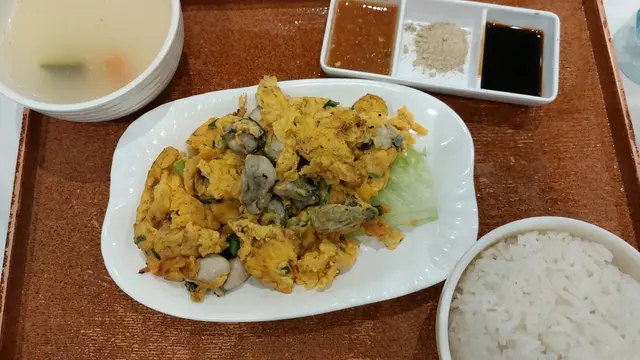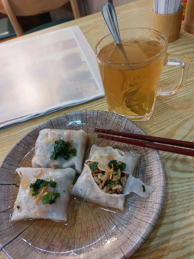 知佢開咗好幾年,有朋友亦話過幾好食,但一直冇動力入去。最近由於趕趕哋,要快食,見佢唔洗等位,就叫咗個蜜雞扒+腸便當餐,配冬瓜茶。門口收銀處點餐後,會有一個牌,服務員會將餐送到。坐咗一陣,食物就送來,盤上有一份包裝餐具,以為係木嘅,哈,係似金屬嘅匙羹同木/竹筷子(唔識分)。雞扒上洒上芝麻,腸係台式風味,下面有估唔到咁多元嘅配菜,有小棠菜,粟米粒,台式米粉,半粒肉丸,蛋半隻,雜菜絲,紫菜絲,好有驚喜,覺得佢哋有考慮到膳食營養,有heart 的做法