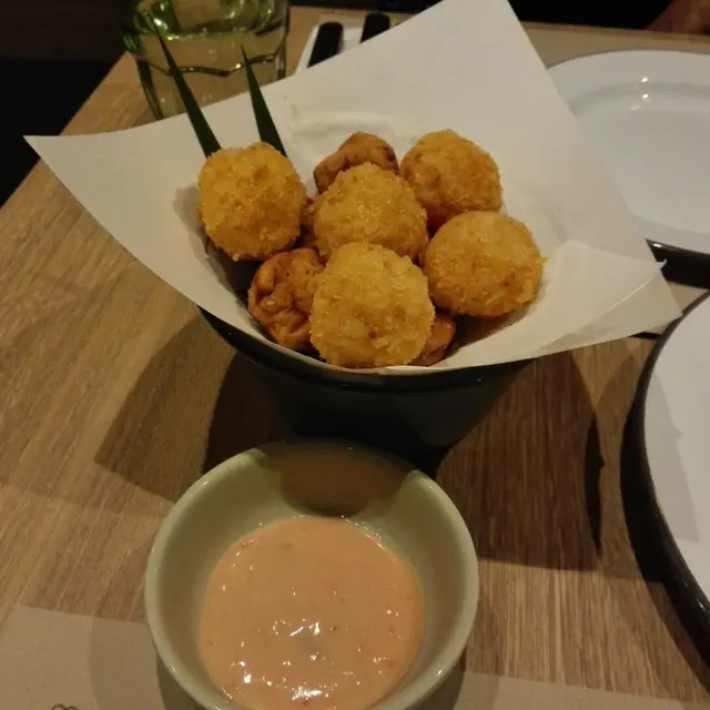 今日我朋友試了三個菜。笫一個蝦魚丸双拼,第二個是脆脆豬腩肉炒椰菜苗,第三個是泰式大蝦炒粉絲。蝦魚丸双拼: 蝦丸尚算彈牙,但魚丸實在太差 ,有點魚鯹, 又散。脆脆豬腩肉炒椰菜苗 : 首先豬腩肉一點都不脆,腩肉的部分又乾又鞋, 椰菜苗亦不是和一般泰國店吃的那樣, 很老又硬。泰式大蝦炒粉絲 : 這是三個菜式裏面最好吃的。可惜蝦球一點都不鮮甜和爽口,炒粉絲的味道就調較得不錯。總括來說以這樣的價錢 在太古城另一間泰菜歺廳, 選擇更多更好味!…查看更多