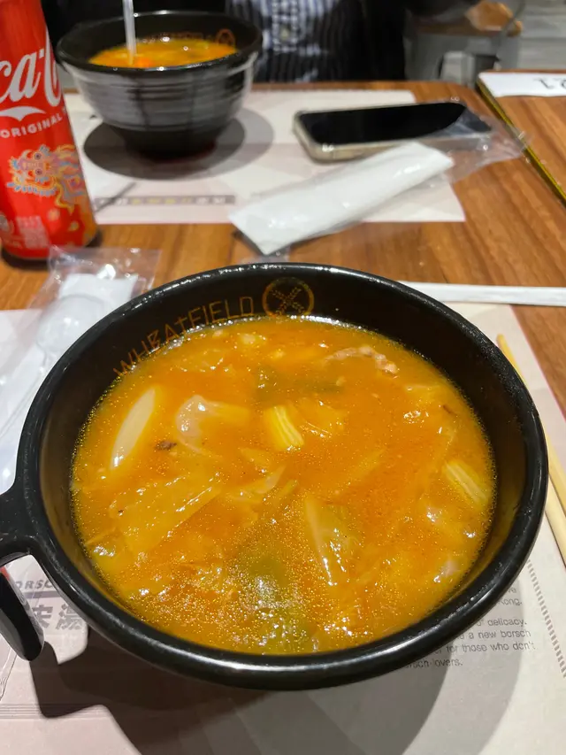 上星期經過打算試下,嗌咗三個餐,一個牛腩羅宋湯配豬仔包加沙拉,一個就係雞扒飯配牛腩羅宋湯,仲有一個牛腩羅宋湯嘅面。個豬仔包就普通茶餐廳質素,然後就到兩個羅宋湯嚟,本身見到出煙熱辣辣應該幾不錯,但係個色水就麻麻地,再搵隻匙羹撈吓見到牛腩得嗰兩三舊