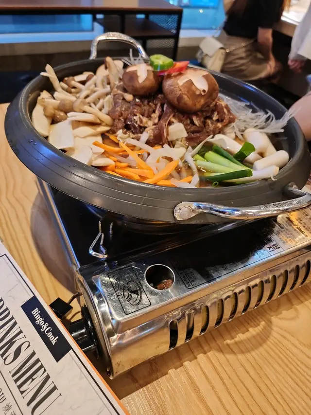 其實個人無好鐘意韓國野 但呢間真係幾好食😋🍲牛肉磨菇鍋 超香超濃唔係明火唔驚危險🔥🥗生菜包肉 正常既好味🥬🍕海鮮蔥餅 意外驚喜 個醬係重點🥣🥘韓式炒年糕 好正宗 稍嫌辣左d😝🍹飲品超多選擇 最愛都係米酒🍻環境裝修都特別😁 雖然位置4個人4樣野4杯野飲真係岩岩好🙈咁岩同行朋友生日 收$50切餅費算好好🎂但出嚟全場熄燈播生日歌 🎶佢好老尷雖haha 不過都特別既回憶嚟🥰下次再去試埋炸雞同其他😉…查看更多