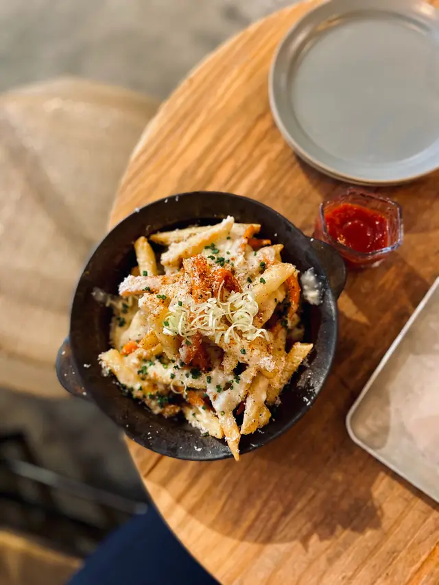 🚩咖啡「Loop」 $58Coconut water加expresso,覺得苦嘅仲配埋椰奶,椰味🆙 入面嗰粒係椰汁冰,所以完全唔會越飲越淡連我呢啲咖啡初哥都覺得fresh得黎好易入口🚩牛油果無花果配酸種面包 $108加 parma ham $15本身以為會好齋咁,點知出乎意料地最鍾意係呢個!牛油果口感好綿密,加埋無花果同埋藍莓嘅酸酸甜甜,超清新好好食🤤店員教一啖無花果雪糕一啖包~絕對係夏天必食🚩三文魚籽明太子忌廉意粉 $118意粉完全吸收忌廉汁同食材精華 B仔覺得有啲咸 不過份量足夠 就唔怕唔夠飽啦😋🚩雙色薯條配blue cheese sauce $78拎出黎唔算好脆 不過有芝士粉加持 都每條口感更加豐富 𝗕𝗲𝗲’𝘀 𝗖𝗼𝗺𝗺𝗲𝗻𝘁📝雖然位於深水埗 但距離地鐵站都要行一段路 所以唔使驚好多人😝加上食物質素唔錯 又可以舒舒服服地想靜靜地hea住過一個下晝 絕對係好選擇🤤𝗜𝗻𝗳𝗼▍ Loop Kulture @loopkulture 📍深水埗鴨寮街90號地舖🐝以上為全自費分享…查看更多