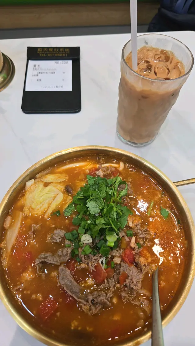 見好評眾多決定試一試😄不論蕃茄湯底及沙茶湯底都試過只係簡單搭配牛肉餸就算!連凍飲堂食價58蚊都算便宜先評論蕃茄湯底,酸酸辣辣的確幾開胃!但辣度真係有點兒嬉!要問職員拎辣椒油先有足夠辣度!:)最後當然連湯底都飲哂:)但沙茶湯底質素真係唔得!死咸,有好足夠既沙茶味...令人十分卻步完全唔知自己飲梗乜野湯!自己係屋企用沙茶醬膽煮既湯底冇分別每碗都幾多配料,有菇丫,娃娃菜等等!我兩次都係點選台灣麵,其實麵質同上海麵口感一樣,完全唔覺有任何分別碗野份量其實唔多,我坐正廚房出面見佢煮!見女廚師執麵既份量只有半隻手份量!當然可以要求加底,但我試過就算了…Read More