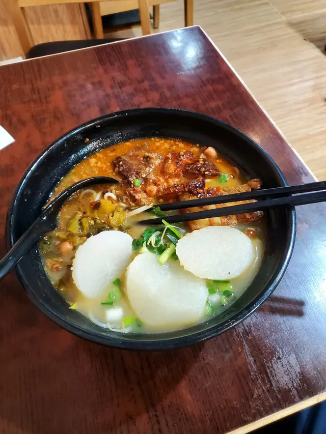 呢間餐廳令我回想起住四川果一個月的回憶!雖然每次我黎呢間餐廳都只係叫牛肉米或紅薯粉....每次都叫中辣,辣得好過癮,湯既味道同四川時冇分別!同紅橋其他所謂既米線舖比,我覺得呢間湯頭贏10條街其次就係碗入面d餸好多...有花生,肉碎,娃娃菜同金菇等等...雖然每次食完都會成身汗,同埋幾張紙巾!但食辣野就係咁樣先叫爽!每個人食野既味道同辣道都唔一樣!但我介紹比其他朋友都一致認同呢間野真係好食另外老闆娘服務態度好好:)又開朗!一碗48蚊既牛肉麵真係覺得好值 好抵…Read More