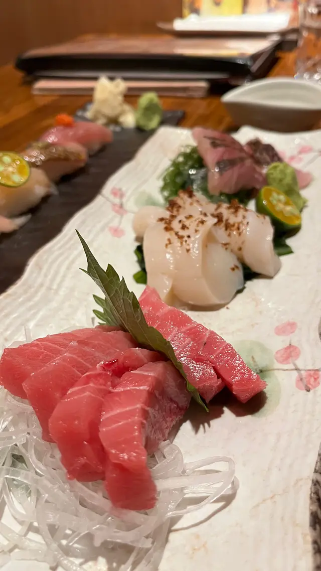 最近喺跑馬地發現咗間新開嘅刺身串燒居酒屋🍶✨成個氛圍好輕鬆,坐低冇幾耐師傅已經笑住打招呼~嗰種親切感,好似返到熟悉朋友屋企食飯咁舒服☺️先上嘅雜錦刺身沙律份量夠晒誠意🥗 魚生新鮮到閃閃發亮🐟秋刀魚刺身特別好味,有淡淡油香;帶子滑得嚟又甜,入口即化🤤師傅仲會隨手送啲小食俾客人試,呢份心思真係加分💯串燒方面🔥 叫咗牛脷、雞肉、腩肉卷蘆筍、雞軟骨同秋葵,每一串都燒得啱啱好~鹽燒黑釣魚最令人驚喜🐠 外皮脆卜卜,魚肉仍然保持嫩滑,食到海嘅味道🌊配杯清酒慢慢歎,感覺啱晒放工後輕鬆一下🍶最後以鰻魚飯同幾款壽司作結🍱 鰻魚厚身油潤、微焦香,壽司飯軟糯得嚟帶啲甜味,完美收尾😋成餐食落舒服、氣氛又好,係會想再嚟嘅地方✨…查看更多