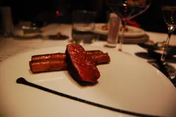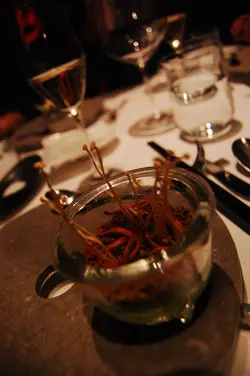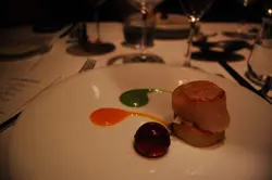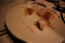 This was one of the most unforgettable dining experiences I've ever ha . I don’t think I’ve ever experienced so many flavours in one sitting. Bo Innovation is the Chinese version of El Bulli and Fat Duck. It’s Asian molecular cuisine. And there was definitely a wide variety of intense flavours tasted throughout dinner. The menu choice was pretty limited. Which is expected. 3 choices for Dinner: Tasting Menu, Chefs Menu, Chefs Table Menu. We all ordered Chefs Table Menu as the entire table has to order it if one wants it. It was a 15 Course Meal. It was insane. We sat down at 7pm, took a while to decide what to eat and our first dish probably came out at about 7:45 and we left the place at around 11:30pm. It was a nice long dinner. The service was definitely great, the waiter was extremely friendly and helpful and he walked us through the menu to let us know how the meal was going to work. Before every course he explained what was in each dish, the idea behind the dish and how to eat it. The waiter had a business card. That was a first. And he’s only worked there for a year. First dish. Oyster with Spring onion, lime and ginger snow. Thing is. I don’t like raw oysters. However. After we decided which menu to have, he asked whether there was anything each of us didn’t like or were allergic to, and I didn’t like raw oysters and so he said he’ll have a replacement course for me. And he did! The Chef made me a “dead garden” which was morel, dried caterpillar fungus, green onion and lime. #2: Caviar, Smoked quail egg, crispy taro. This was good too. The smoked quail egg tasted like “fun dan” #3: Taro, Demon riesling, Black truffle. They actually came to our table with a cart and had these plates of tiny soup then this server came and explained this dish and how this company deliberately created this wine for their restaurant and they use it in this soup. And then grates the black truffle right in front of us. It was very yummy =) I could definitely taste everything they say they have in the dish. I could taste the taro in the soup, the truffles obviously and the wine. #4 Har Mi [蝦米] This dish is apparently award winning and after I ate that dish I knew why. A dish serving har mi noodle, carabinero, capellini, chilli and sage. It was the best combination of flavours and foods ever. It was funny it reminded me of eating in a cha chan teng because that’s usually when I eat my food with chilli oil. But the prawn was perfectly seared so it was medium rare, the noodles were the perfect texture, and everything all mixed together was just delicious.#5 Bamboo, baby shoot, pith, foie gras. The smell of the dish was very… interesting. The strong smell of the bamboo made all of us wonder what this dish was going to taste like and whether it would ruin the foie gras but it didn’t even affect the taste of the dish. This was another dish that was just perfectly prepared. The foie gras was suvi’d… I didn’t know how else to phrase how the foie gras was cooked. And the pith wrapped around it created the perfect combination of textures to eat it with. AND with the red peppercorn sauce. mmmm….#6: Scallop, kaffir lime, kyoho grapes, sea urchin, mango, shichimi, potato. So this dish the server explained was supposed to represent all the flavours. Salty, bitter, sweet and sour. And I definitely tasted all 4 flavours in this dish. The entire dining experience was fun because we really got along with the server and he said if we could guess where each item of this course was on the dish then he was going to leave. But we couldn’t figure out where the sea urchin was. And the sea urchin was mixed with the mango sauce. Which made sense visually but I couldn’t really taste it even though my sister said she could. I don’t like sea urchin so that’s probably why I wasn’t familiar with identifying the taste. Shichimi is just 七味粉 which was mixed in with the potato. This was another great dish, you eat the scallop and potato together dip it with the lime sauce which reminds you of tom yum gung because of that strong lime taste. And then you eat the jelly grape with the mango sea urchin sauce. So salty with bitter, and sweet with sour.After that. The following courses were good, but not dish can be outstanding:#7: Iberico 36, morel, vermicelli, onion foam#8: Molecular “xiao long bao”in between they served us a palette cleanser: dragon fruit with ginseng sorbet. It was refreshing to eat and definitely helped cleanse the flavours out of our mouth to prepare us for the next course. #9: Salmon, “fu yu”, spinach#10: Squid, sweet bread, lettuce greens (served with soup) - this was really good.#11: Black truffle, wagyu M9+, and “cheung fun” - SUPER GOOD. #12: Sex on the beach….. this was a optional choice on the menu. It’s a dessert which I won’t elaborate on it but it was quite interesting aesthetically to look at… it was served in a martini glass with strawberries at the bottom, peppercorn cream (which I didn’t like. I would have preferred if it was mascarpone but then that would be too typical), served on top with maple flavoured crumbs. The supplementary fee goes to money that is donated to an AIDS organization. Then we had 3 more courses of dessert:#13: Sandalwood, almond, hawthorn. I did not like this dessert. This was the only thing I did not finish. It was panna cotta served in this glass jar and when you open the glass lid smoke comes out and it’s sandalwood which reminds you of incense. Which was the purpose of it… and the entire dessert tasted of this smoke as well, which I didn’t like about it. #14: Shui Jing Fang, banana, vanilla, caramel, raisins. Shui Jing Fang, the server explained, is this 52% alcohol and is a special wine which they mixed into with the caramel sauce. I mixed it in with the ice ceam and it sure was really alcoholic. It was too alcoholic for me though. The only thing I liked about this dessert was the ice cream. LAST B
