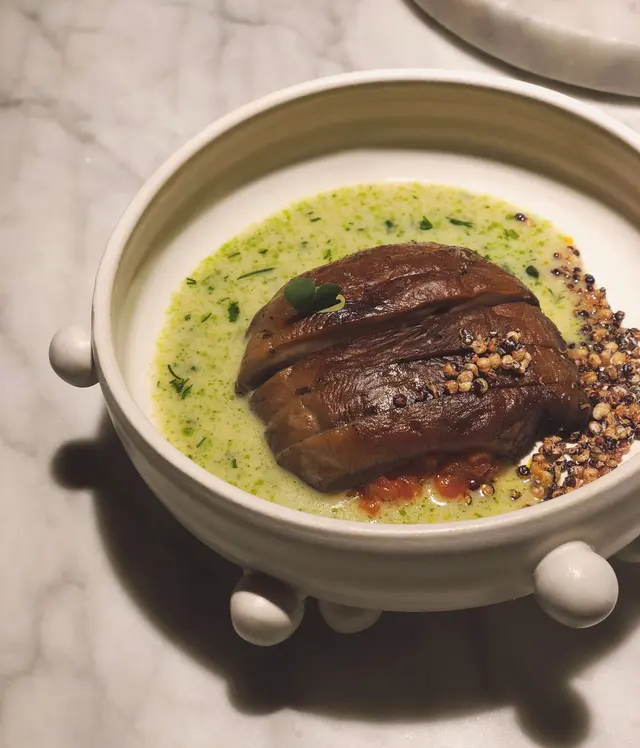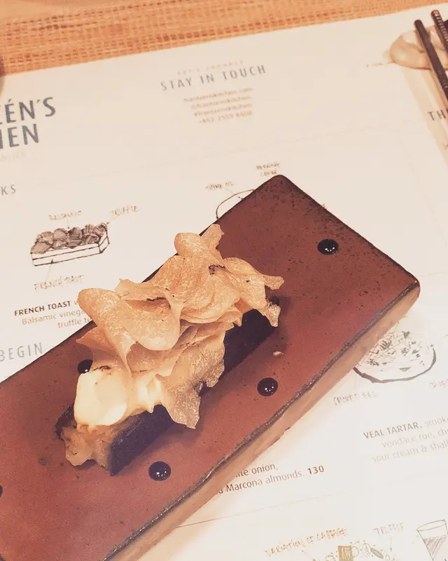 有嘗過尖沙咀的米芝蓮一星店的ÉPURE,對日本食材融合法國新派廚藝作菜也不會覺得陌生,餐廳設計以落地玻璃設計為主,木材天花和地板為空間定下柔和基調,完全沒有Fine Dining一絲拘謹的感覺,很自在舒服。鴨肝鵝肝永遠是法國菜缺一不可的菜。這款冷吃鴨肝醬,配少許甜酒jelly、果仁,鴨肝慕斯打得幼絲細滑,但個人覺得搭有咬口的果仁粒,雖然口感有所提升但格格不入。(8/10)第二道是北海道的帶子,用炭火輕把表面烤熟,內裏仍保持刺身般的狀態,整體味道清甜。 (7.5/10)如果喜歡黑松露,接著這一道一定令你大開眼界,一片片黑松露佐以法國雞油菌蘑菇和舞茸菇香氣十足,沒有太多的調味,只是黑松露的味道已經大大提升了整道菜。 (8/10)到主菜反而有點失望,汁煮魚沒有太大驚喜,但魚肉很幼滑,下次來的時候還是選最穩陣的和牛吧(6/10)最後甜品上場,已經飽到吃不下,比較吸引我的是後面的貝殼蛋糕「Madeleine」,口感鬆軟,帶點青檸味和牛油香味(7.5/10)整個用餐體驗都非常驚喜,值得再來!…查看更多