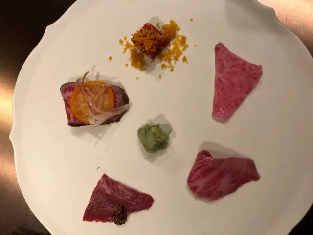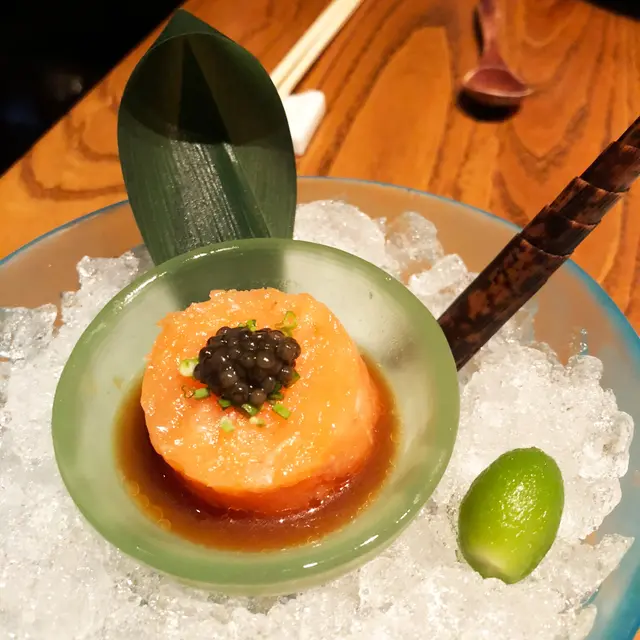 zuma係英國進駐嘅fusion日本料理,係倫敦既時候我已經食過,諗住香港既水準都keep到所以黎試下。呢度裝修佈置好特別,用左好多落地玻璃,樓底好高,但就好嘈,話佢係高級餐廳又唔係,似係比人飲酒談歡多啲,仲要大部份人都係鬼佬多。聽好多人講都話要試佢地嘅刺身,今次我點左兩個都係tartar,刺身牛同幾款唔同既壽司卷物等..先試呢個salmon tartar配上魚子醬,下面有醬油浸住,加d檸檬汁上去撈埋黎食好好味,真係好新鮮..跟住到otoro同salmon既tartar combo,上面都係有魚子醬再加d蔥粒,淨係睇賣相都一流,油脂分佈均勻,放係炸蓮藕片一齊食好正,比上面既更加滑同口感黏啲..到呢個松露片配刺身和牛,包埋d青瓜口感好清新,但醬料好普通,尚待改善。其他壽司卷物好一般,不值一提。感覺呢一間係名過於實,雖然食得出用料上乘,但因為價錢太貴而且唔值所以唔推薦,不過同客食飯都係唔錯既選擇但一定唔會自己黎,想食正宗既日本料理更加唔會揀呢間。值得一讚既係呢度既服務,都算幾專業嘅,每上一道菜都會為我地講解。…查看更多