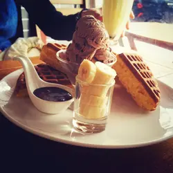 住在筲箕灣附近,又見食家評論不差,於是來上咖啡一嚐甜品。樓上cafe,鋪面寬敞。點了香蕉雲呢拿雪糕窩夫以及草莓窩夫配雪糕,窩夫比起其他cafe的霖身,好普通,雪糕一試就知道是雀巢公司的,其他配料亦沒有特別之處,但奇怪的是窩夫淋上了類似麥記的熱香餅蜜糖,大概是想令窩夫更甜?不加更好。$48配飲品算是還好吧。可以一嚐的是蜂蜜藍莓茶,酸酸甜甜的,配窩夫不錯。整體分數:6.5/10…查看更多