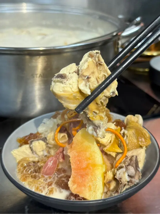 週末同friend行完城門水塘直接俾佢拉咗嚟呢間打邊爐早就聽講過佢哋個「美人出浴」湯底今日終於試到!個湯底真係有啲料到用咗8個鐘老火雞湯做底煲到湯色奶白 入口又滑又濃裏面仲落咗木瓜、花膠、桃膠雪耳、紅棗同蟲草花飲落帶啲木瓜清甜加咗牛奶之後口感更綿滑 但一啲都唔膩~料都落得夠手重雪耳煮到淋滑滑 花膠又軟又糯紅棗同蟲草花愈食愈覺得養生個湯底本身味道已經夠晒濃我哋全程都冇點醬 就咁食原味已經超滿足✨飲完一碗成個人即刻暖笠笠感覺今日行山消耗嘅元氣都補返晒真心推介畀鍾意飲湯又鍾意打邊爐嘅姊妹…查看更多