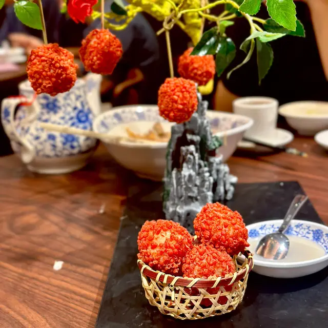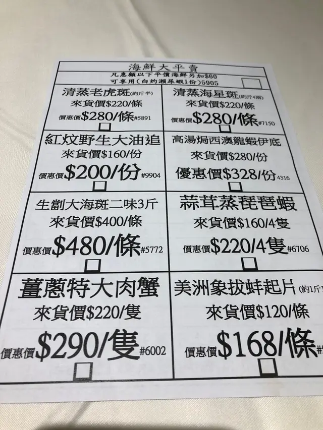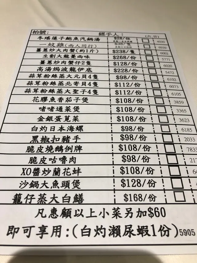 中秋節食晚飯,真係唔想揀中菜。見新開張,打電話問下,話無需叫套餐、無加價。咁就一於去試下。中秋節分2輪,5:30同 7:45。book左7:45,去到就入座,唔洗等,幾好。睇餐牌,同一般中菜小炒有啲唔同,啲餸幾有特色。訂位時,職員推介了幾款小菜,建議留左先,現場可能會賣晒。我們預留了 荔枝墨魚丸 和 黑蒜螺頭湯。現場吃了,實左好吃!想加個冰鎮咕嚕肉,可惜無訂無得食,唯有下次。總共叫左 3個小食, 1個湯,6個餸,1個粥,真係樣樣餐都好食,全部清晒!小食特別推介,話梅花雕蝦。餸就山葵沙律脆蝦球。粥係砂鍋水蟹粥,好鮮甜!7個人,吃了 $2200 。每人$310有呢個質素,唔貴,絕對會encore!…查看更多