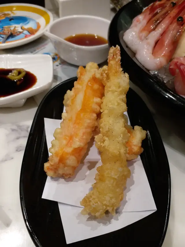 )第三碟到既係天婦羅蝦同蟹棒,食落去無粉味,唔油,已經比起其他放題餐廳係唔錯,加上唔駛點豉油都好味,呢個值得一試!第四碟上既係期待左好耐既刺身!!我地每款都叫左5件,有三文魚、海立魚、甜蝦、八爪魚、北寄貝、象拔蚌、帶子、白鳥貝、鮑片、希靈魚