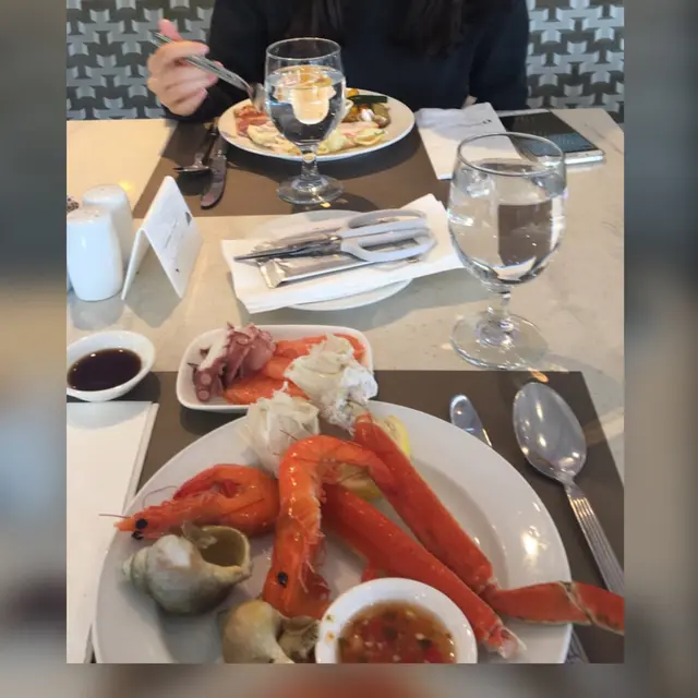 昨晚同朋友專登book位去試Book八點,結果八點半先入得去(但職員都有禮貌,都接受既)餐廳環境係唔錯既,坐得幾舒服,幾岩傾計但食物一般般試左個主打既海鮮拼盤 2-4人分(無折$438),分量好少,啲海鮮都好細西西里蟹肉意粉($178 八折)反而幾好食飲品(無折)試左Red Fresh Fruit Sangria同fruit punch.......好一般有折既既食其他主餐牌食物都ok值得既,但海鮮拼盤就唔值得試