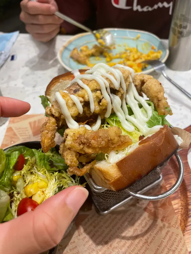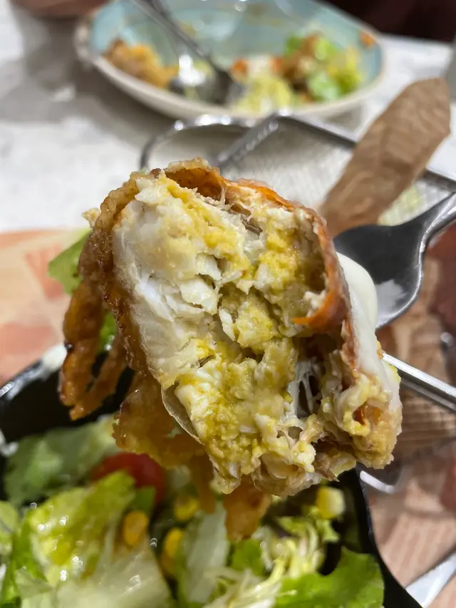 馬鞍山經常被叫作美食沙漠,冇咩選擇,大部分餐廳都係連鎖式經營。依幾年,真係唔同左,位於鞍祿街18號嘅茶舍,接近7:00pm 已經开始坐滿人同埋要排隊……入到去服務員有禮貌、招呼周到!我哋-行二人叫左兩個主菜、-個沙律都唔過二百蚊!真心不錯!講下環境先…. 舖面都好大,入面仲有-張圓枱可以for 多人聚會🎈我哋今日就坐左張四人卡台,夠曬大!入到去客人可以掃QR code 點餐,menu 上圖文並茂方便使用!食物質素方面:1. 炸軟殼蟹吐司用料上乘!件軟殼蟹接近大半隻手掌咁大,-咬落去D蟹汁流曬出黎非常正!建議大家必食!個飽配有大量沙律菜所以食落好balance ! 唔會滯….. 另外可以揀配菜,薯條或者日式沙律。我揀左日式沙律,沙律汁用左意大利黑醋、橄欖油,健康清新!2. 南瓜雞肉意大利飯份量好大南瓜味濃配埋芝士雞肉🍗正!好好味下次去開馬鞍山又多一個聚腳點喇…查看更多