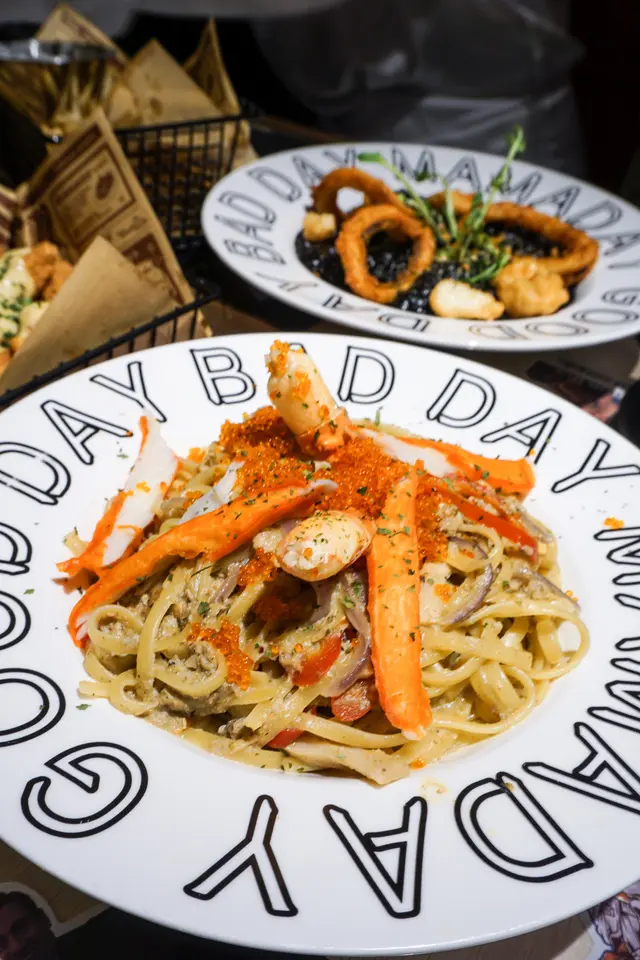☞ 終於去到呢間最近新開嘅人氣cafe😆佢係mamaday嘅姐妹店,所以食物方面絕對有信心保證👍🏻🍴黑到爆炸魷魚圈墨魚滑墨汁燉飯($128)❖ 個risotto墨汁味好重!入面有好好多墨魚條同尤魚🤤🍴有蟹GO又有蟹肉的蟹蟹蟹意大利扁麵($138)❖ 同mamaday一樣超足料,真係有好多蟹肉喺入面🤤食晒都唔會好漏👍🏻🍴美利堅合眾國草飼牛扒($168)❖ 肉汁好腍,我哋嗌咗medium rare,火候控制得幾好,不過略嫌份量有啲少🥹🍴蜜汁香茅豬頸肉($136)❖ 個蜜汁食落好似bbq味😆😂好惹味,同朋友share唔錯~🍴WINGS 燒雞翼我鍾意食 / 記住期望愈大失望愈大($68)❖ 佢個名真係咁funny😂😂😂唔係我老作!佢係單骨雞翼嚟,嗌咗蜜糖芥末味,食落有少少辣味,幾開胃🤤🍴薯薯...條($45)❖ 揀咗黑松露醬,個黑松露味好重~薯條炸出嚟偏淋身唔係脆口嗰種🍟🍴73.5%朱古力最好味($48)❖ 見到可可比例重嘅朱古力就忍唔住要嗌😆飲落唔算話好濃,奶味比較重但唔會死甜。🍴你今日飲左益力多柚子沙冰未呀?($56)❖ 呢個飲落柚子味比較重,有少少益力多味中和返,如果鍾意柚子味嘅朋友可以一試🤙🏻🍴保證酸maymay,面青口唇白沙冰($56)❖ 我諗到個形容詞就係「好檸」😂不過絕對無飲到那埋口面嘅感覺😂🍋🍋…查看更多