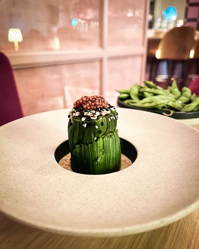 ☞ 鰂魚涌太古坊入面有一間高質日本菜,入面環境氣氛好好,今次就試咗佢地既Tasting Menu😋店員仲話一定會令我地滿載而歸~🤩❖ Tasting Menu ($880)🍴 Spinach❖ 滿滿既菠菜,配上芥末籽同底部既芝麻醬,非常開胃,作為前菜岩岩好😋🍴 Waygu tataki❖ 薄切和牛他他🥩好重肉味,食落醬汁酸酸甜甜🥰🍴 Sashimi Moriawase❖ 呢個刺身拼盤賣相一流😆每件刺身都係超厚切,海膽好鮮甜,超滿足😚🍴 Madai truffle❖ 黑松露配鯛魚呢個配搭我真係第一次試😋店員會即場喺客人面前磨黑松露,入面仲有唔同配料,醬汁呈啫喱狀,食落除左黑松露味之外仲有啲酸酸地👍🏻🍴 Honjokko Otoro Maki❖ 四件煙燻過既拖羅卷,食落入口即溶🤤口感非常有層次😆🍴 Robata pork belly❖ 呢個Pork Belly食落油脂感好重,但配埋木魚絲同沙律醬食落係油而不膩!🥰🍴 Sea Bass Saikyoyaki❖ 呢個海爐魚好有驚喜,食落肉質非常嫩滑,而且魚皮燒得好焦香,味道微甜👍🏻🍴 Black Sesame Creme Brulee❖ 呢個芝麻Creme Brulee超重芝麻味!面頭既芝麻脆片同埋中間既焦糖雪糕比想像中夾,芝麻控表示很OK!😍😍😍…查看更多