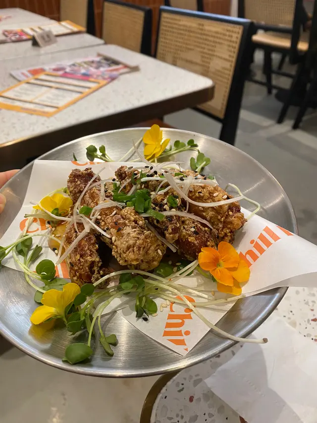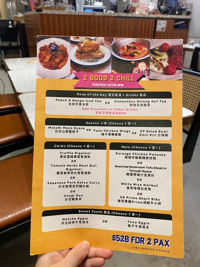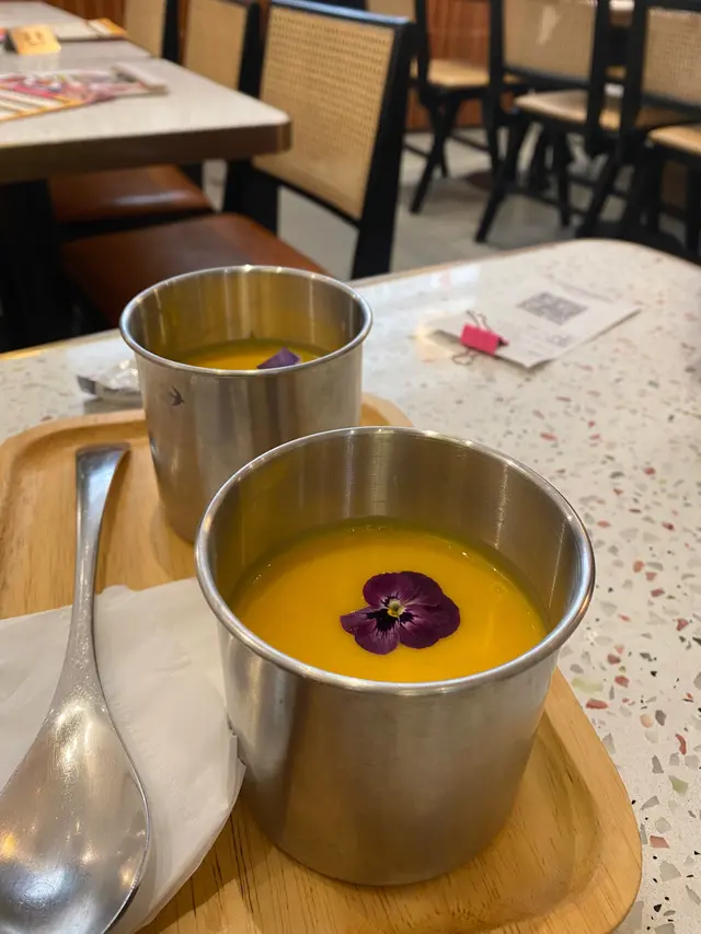 2 Good 2 Chill 2人餐 $528餐非常之豐富,食物高質,食完仲好飽添呀😂位置唔算多,眼見晚餐時間大部份人都有book位!廚師用咗大量食用花,令每個上菜都係好靚令人好開心🥰是日餐湯南瓜湯黎嘅!好香好creamy,仲食到有南瓜蓉添👍🏻👍🏻湯上到好熱,慢慢飲好暖胃!柚子蜜糖雞翼有得3揀1!食肉獸我哋梗係揀雞翼,好多柚子蜜,個種酸甜酸甜感覺好好味😋日式鰻魚丼4揀1!里個好抵食咼!鰻魚份量好大條😂雖然飯嘅比例都多,但係佢攞咗啲鰻魚汁同紫菜碎,好好餸飯😍都好大碗下!唐揚炸雞楓糖漿班戟成晚嘅highlight!超好食!!!唔講我會以為佢係成間餐廳嘅signature food🥹炸雞又厚又唔油,入面juicy!配埋落班戟度同有幾片青蘋果,個種酸酸甜甜,又幾夾好refreshing! 頂層仲有個蛋,成個賣相好得!👍🏻100分柚子牛角窩夫最後仲有個甜品添!一啲都唔馬虎😂窩夫熱辣辣,好香牛油味!配冰凍嘅雲呢拿味雪糕,一流呀!仲有焦糖脆脆,食落唔會好甜👍🏻👍🏻花生醬奶蓋鮮奶latte 呢個真係好創新,第一次試!味道好夾👍🏻果然係推薦嘅飲品😍香蕉Oreo Smoothie呢一個都係推薦嘅飲品!飲得出唔係用香蕉糖精去打,係用真正嘅香蕉👍🏻味道好raw,唔會好甜,高質!仲要有Oreo脆脆口感🥹…查看更多
