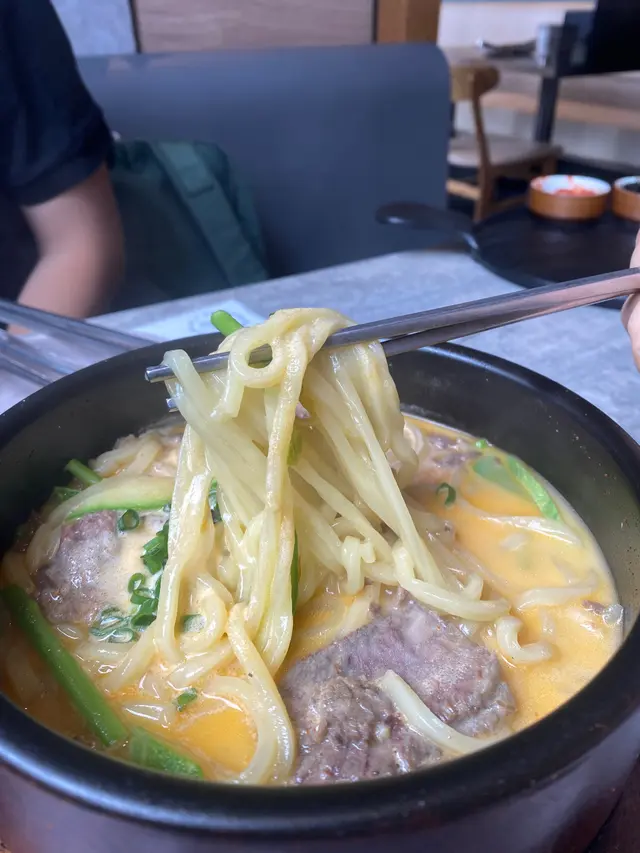之前同朋友嚟食過晚餐,今日lunch time比較充裕啲時間,所以同同事揀咗呢間,今次可以慢慢嘆!!環境一流,而且空間感十足,兩個人都俾你坐四個人嘅卡位,坐得好舒服!最重要係冷氣好足,又播住K-pop,有種錯覺去咗韓國咁🤣玫瑰牛肉砂鍋湯麵 $128呢個係一個午餐set,所以仲有湯,四個前菜,飲品🤭性價比高咼😘個樣睇上去好creamy,係有奶白湯咁,但食落一啲都唔heavy!麵質好正,係粗粗地又有咬口!!不過建議如果鍾意食,晏啲就要早啲食,因為石頭鍋令到佢會繼續有煮緊嘅效果😂牛肉都好高質,肉紋好清晰!唔會太肥👍🏻八爪魚煎餅 $138超好食!煎到外脆內軟,同埋有啲蔥喺度令香氣味道增加💕八爪魚係粒粒,唔會太難咬!佢仲配咗兩個醬,紅色嘅係甜酸辣都有嘅味道,好得意!黃金蒜香炸雞 $198去韓國餐廳點會唔食炸雞😆呢個係佢嘅招牌菜!蒜香味十足,唔會太過肥膩!仲有檸檬減肥膩感😌側邊仲有啲蝦片同番薯條,都幾飽下芝士蟹子蛋捲 $135蛋捲上面有茄汁同芥末汁🤭入面包住勁多芝士同蟹籽🥶好鬼正!!!一啲都無手軟,落超多呀!!!!…查看更多