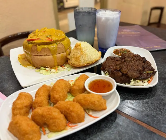 超過30年歷史的九龍城泰國餐廳,店員都是地道泰國人,試過九龍城附近幾間泰國菜,最鍾意都係呢一間。裝修富歷史感夠地道,食物質素不俗,價錢相對嚟講都係便宜,性價比都高👍🏼,食物水準穩定• 炸蝦餅新鮮彈牙又大件,夠惹味• 必食大圓法包椰皇黃咖喱雞,黃咖喱不辣,甜甜地,而且很香椰子味,配上外脆內軟法包蘸來食,十分開胃,最特別係咖喱有椰肉,口感不錯。 • 泰式燒牛肉做得恰到好處,燒至差不多8,9成熟,但肉質唔會靭、乾• 特飲椰子冰同青檸梳打都還原到泰國街頭市集個種地道風味,泰完美😍…查看更多
