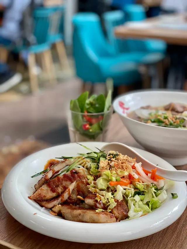 ✨大家鍾意食越南撈檬嗎❓我覺得夏天必食,特別開胃醒神!呢間係旺角朗豪坊主打越南菜既[火車頭越南餐室],佢地門面裝修以火車頭佈置設計好搶眼,裡面光線充足開住太陽傘做裝飾感覺好似室外咁😎‼️.💬生牛肉湯河 $79賣相唔錯☺️!上枱時另上有芽菜、金不換🌱同辣椒粒,青檸就放左係湯河入面😂!牛肉份量可以,但啲牛肉就差唔多熟晒😆!不過口感唔韌,但都唔算嫩口,湯底略淡,要加點魚露才好食,整體黎講一般!.💬香芧豬扒撈檬 $79豬扒算大件,煎得夠香,肉質唔會柴口,撈檬加埋啲配料同越式酸甜汁撈黎食真心好味😋!夠晒開胃惹味😋!.💬椰汁三色冰 $39 從小見到呢啲飲品我都會毫不猶疑會叫😂!無點解架靚囉!呢杯椰味香濃,唔算好甜,覺得中規中矩冇咩特別😂!..📍 火車頭越南餐室 (朗豪坊) (旺角)旺角亞皆老街8號朗豪坊4樓12號舖..…Read More