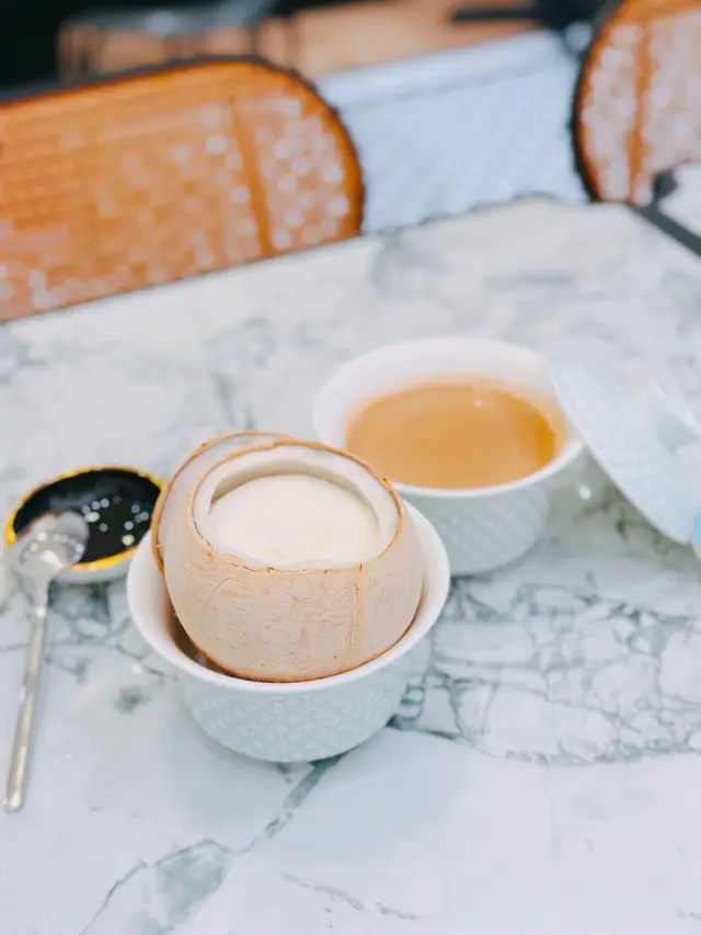 平時都好鍾意食中式甜品最近發現尖沙咀開左間用心製作嘅小店熱食甜品選擇好多 而且仲係少糖製作好啱養生一族去食😆凍食甜品亦都唔少款式 迎合大眾口味座位都好舒適 啱晒成班朋友飯後食糖水特製蓮子合桃露王 $62口感柔滑,每一口都可以感受到蓮子同合桃嘅香甜味道。亦可食到部分合桃沙粒,合桃味超濃郁!平時好怕太甜,老闆話鋪頭甜品主打少甜,勁啱我口味椰皇燉鮮奶 $60呢款係熱食,燉鮮奶口感滑溜,帶有椰汁嘅香甜味道!椰皇新鮮,唔係用雪藏椰皇,椰子肉特別鮮嫩香甜。嫩香蛋白杏仁茶 $36呢款係用咗高級杏仁製作而成,味道好天然,比起坊間一般食到嘅味道更勝一籌,必點推介!加左蛋白嘅杏仁茶更加順滑,而且杏仁味濃郁。賞心九格格 $128可以任選三款甜品,甜品係迷你size!仲有點心組合三款,每款有2件。甜品就揀左楊枝金露王、特製蓮子合桃露王及新會遠年陳皮紅荳沙。楊枝金露都好出色,酸甜度平衡得好好。是日點心就有香脆大蝦球、香脆迷你魚膠春卷及酒香雞翼。蝦球入口好彈牙,春卷外層酥脆,內層彈牙。雞翼係凍食款式,酒香味濃,肉質保持滑嫩。…查看更多