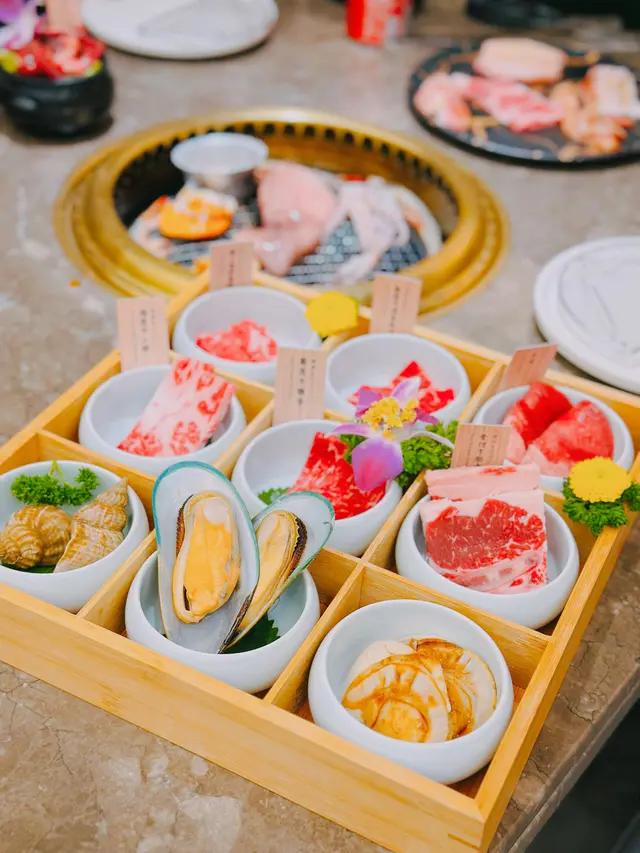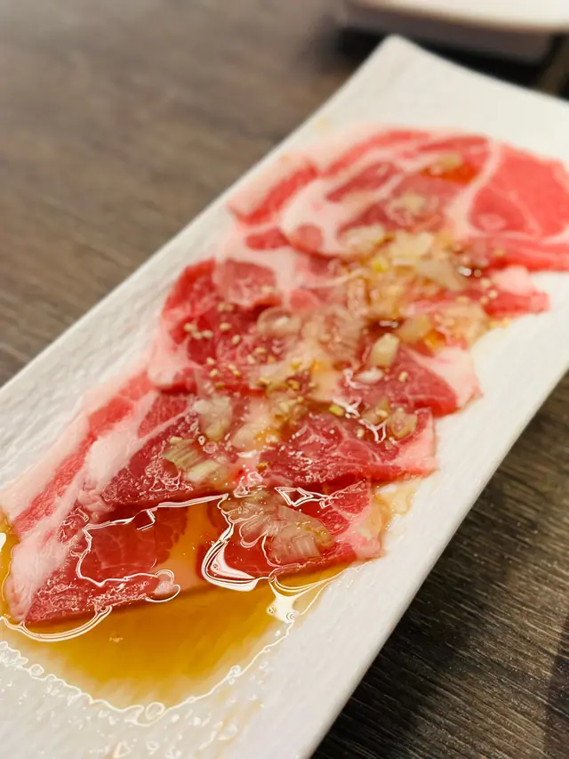 最近觀塘開咗間新嘅日式燒肉店身為燒肉控嘅我即刻訂檯餐廳嘅裝潢佈置走日式風格俾人一種柔和舒適嘅感覺座位亦好闊落同舒服有多款靚肉選擇 仲有海鮮🦐🔸Lv.3 極上安格斯牛小排海鮮放題 $438放題分咗5個level,今次我叫咗佢中價位嘅lv.3放題,總共有100款美食揀!入座後會送上一壺煙燻壺漬封門柳同埋一盤竹牛肉海鮮九宮格。原條封門柳經過煙燻同埋壺漬後非常入味,燒完之後肉質嫩滑,口感好有嚼勁。九宮格有六款牛肉同埋正款海鮮,牛肉每款嘅色澤都好靚,最有驚喜嘅係牛小排,食落好juicy,牛味亦好香濃。海鮮有青口、帆立貝同埋螺肉。🔸前菜/沙律選擇都幾多,除咗有味付螺肉、中華沙律、芝麻八爪魚之外,仲有Lv.3先食到嘅中華海蜇,食落爽口開胃。🔸牛肉類有多種牛肉部位選擇,包括牛吞、牛肋肉、牛頸脊等等。我最推介嘅就係Lv.3先有嘅美國Prime原塊牛板腱,佢嘅油脂分佈好靚,食落油脂感豐富,同時牛味亦好香濃,好味到encore 咗幾碟!🔸豚肉/雞肉類雖然呢間燒肉店主打高質牛肉,但佢哋嘅豚肉同雞肉都毫不遜色,有成十幾款豚肉同雞肉選擇。🔸海鮮類餐廳嘅燒海鮮好高質,款式選擇多之餘仲好新鮮。大海老肉質實正彈牙,原條魷魚筒燒完之後香氣撲鼻,口感爽嫩,仲有廣島蠔同埋帆立貝任食。🔸日式料理除咗燒肉同海鮮外,仲有十多款日式料理選擇,包括有玉子燒、炸芝士年糕、炸雞軟骨等等,總有一款啱心水。🔸自助區餐廳嘅自助區放咗飯類同麵類,除此之外,飲品、甜品、雪糕等等都可以喺自助區到自取,非常方便。🔸優惠適逢新開張,凡惠顧Lv.3或以上級別嘅放題套餐,就可獲贈清酒煮特大帶子一隻。…查看更多