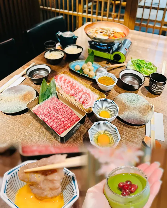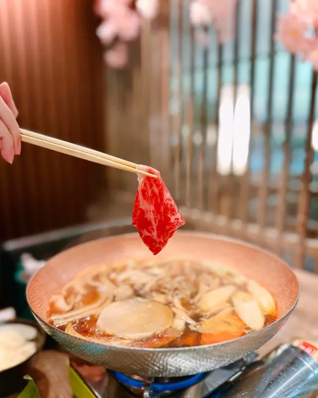 近來天氣開始轉涼🌬️係時候去食火鍋🍲暖下身今次去左間有91 年歷史嘅西京燒専門店餐廳有好多櫻花佈置 真係好適合打卡📸✨銀閣 $788/2位✨呢個二人套餐好抵食,有特選野菜盛合、和牛、豚肉、丸、烏冬及甜品。壽喜燒有四款湯底可以選擇,今次我哋就揀咗東京風壽喜燒出汁,呢個湯底好適合配搭和牛同各款蔬菜。🔸特選野菜盛合有多款新鮮蔬菜,包括紅蘿蔔、南瓜、本菇、洋蔥、大蔥、舞茸、水菜同大根。蔬菜吸收哂壽喜燒個湯汁,非常惹味。🔸日本A4和牛赤身一份有八片,每片嘅色澤都非常亮麗,紋理亦都好靚。食落好軟腍,口感juicy,牛味香濃,同東京風壽喜燒出汁係絕配。🔸日本黑毛豚肉油脂分布好平均,每片都好薄切,食落好唔會好油膩,口感好唔錯。🔸精選丸子用免治雞肉手打而成,食落好嫩溜彈牙,非常特別。🔸烏冬份量啱啱好,口感好滑溜,超掛汁好好味。.🔸抹茶布丁抹茶味香濃,口感creamy。.🔸鹽燒牛舌 $108牛舌好厚切,一碟有四片,外層燒到好焦香,口感好有嚼勁,牛味香濃。🔸蒲燒鰻魚 $138一碟有四件,每件嘅外層都燒到好脆。燒汁嘅鹹度啱啱好,非常惹味。…查看更多