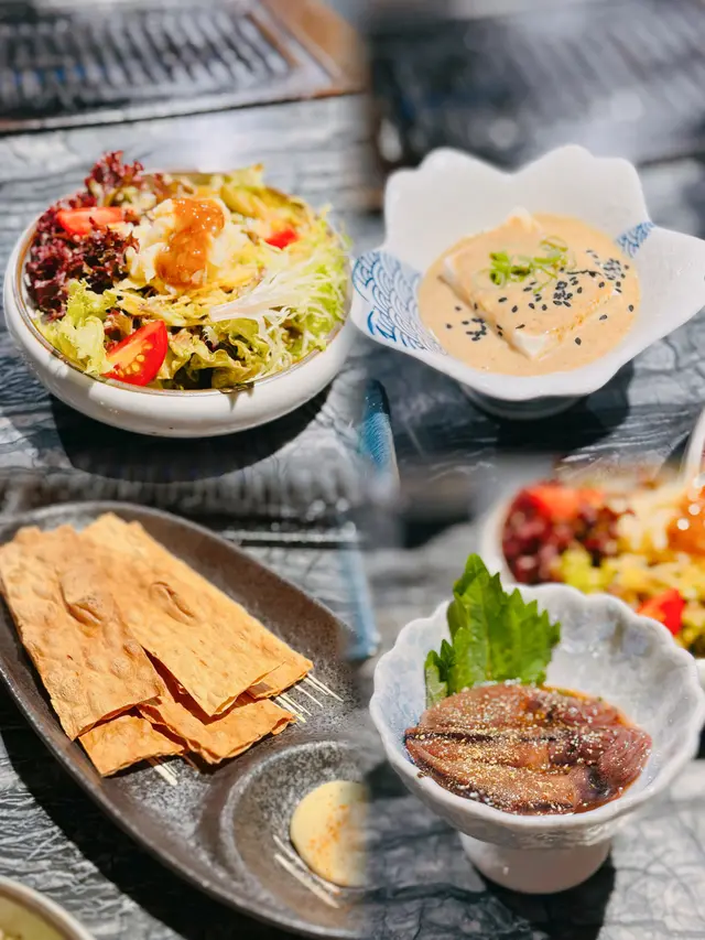 由即日起至至9 月 30 日日本鳥取縣與燒肉臻合作期間供應產量稀少嘅鳥取和牛係名牌和牛始祖之一牛味濃厚而且入口即溶酒盜薯仔沙律酒盜係呢個沙律嘅主角。味道鹹香,帶有一種微微嘅酒香,令整個沙律多咗一份風味。酒沙律菜好fresh!螢光魷魚口感好彈牙,入口有一種嚼勁,彈性十足。佢嘅肉質鮮嫩,作為前菜特別惹味。燒鱈魚乾烤到好香脆,配埋沙律醬一齊食,絕對係配酒嘅小食!胡麻豆腐胡麻醬好香,豆腐超滑嫩!鳥取和牛盛合盛合有:牛胸腩,牛肩腩胛,肩小排。日本烏取縣被稱為和牛嘅起源地,和牛嘅油花紋狀好靚,色澤鮮紅亮麗。牛胸腩嘅脂肪相對地較少,食落口感緊實,但完全唔會韌,肉味非常香濃。牛肩腩胛口感相對嫩滑,油花好均勻,食落好有嚼勁。肩小排口感最為軟腍,油脂感豐富,入口即溶。伊比利亞夾心肉油花分佈非常均勻,呢啲油花融化喺口中,釋放出豐富嘅油脂香味,超滿足!肉質仲好細嫩,軟腍好食。野菜盛合有粟米、茄子、南瓜、青椒、杏鮑菇,職員仲好貼心幫手掃牛油上去。和牛肩小排茶漬飯和牛肩小排肉質鮮嫩多汁。茶漬飯則散發著茶葉嘅香氣,米飯吸入晒茶味,但仍然粒粒分明。芝士蛋糕/宇治抹茶芝士蛋糕芝士味濃郁,但食落唔會覺得太膩!餐廳仲設有清酒機,凡惠顧鳥取和牛盛合的可獲取代幣免費試飲6 款鳥取縣清酒🍶超抵呀‼️…查看更多
